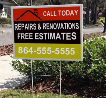 Yard signs can be single or double-sided, contour cut to shape, and have wire stakes added for display purposes.